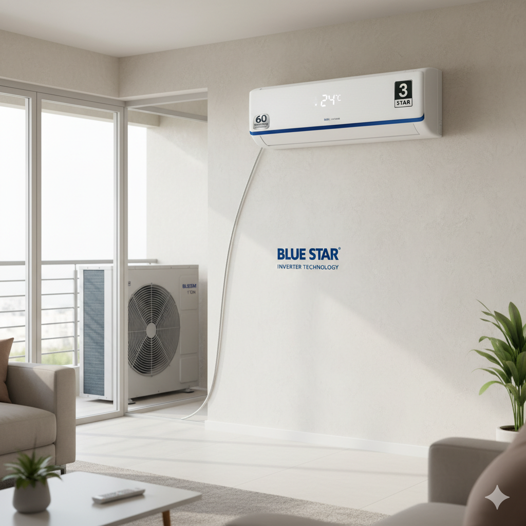 Blue Star 1 Ton 3 Star, 60 Months Warranty, Inverter Split AC (Copper, Convertible 5 in 1 Cooling, Multi Sensors,Blue Fins, Self Diagnosis, IE312YNU, White) (Copy)